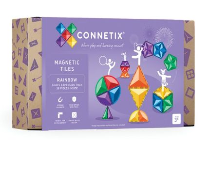 Discover a new world of shapes, design and STEAM learning with the 36 Piece Rainbow Shape Expansion Pack. Featuring our vibrant rainbow colours, this pack introduces large equilateral triangles, right-angle triangles, quarter circles, pentagons, trapezoids, and rhombis to your Connetix play!